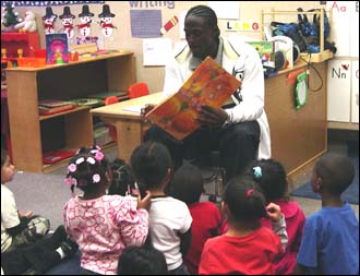 Eugene Reads to Young Students Raiders safety Hiram Eugene visited a local pre-school recently, and learned that it's never to early to start reading.